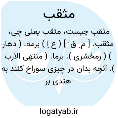 مثقب. [ م ِ ق َ ] ( ع اِ ) برمه. ( دهار ) ( زمخشری ). برما. ( منتهی الارب ). آنچه بدان در چیزی سوراخ کنند به هندی بر ما گویند، این صیغه اسم آلت است از ثقب به معنی سوراخ کردن. ج، مثاقب. ( ناظم الاطباء ) ( از اقرب الموارد ). برما. برماه. برماهه. برمای. گردبر. گرده بر. بیرم. مته. ( یادداشت به خط مرحوم دهخدا ):