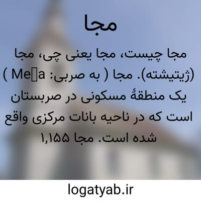 مجا (ژیتیشته). مجا ( به صربی: Međa ) یک منطقهٔ مسکونی در صربستان است که در ناحیه بانات مرکزی واقع شده است. مجا ۱٬۱۵۵ نفر جمعیت دارد و ۸۱ متر بالاتر از سطح دریا واقع شده است.