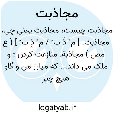مجاذبت. [ م ُ ذَ ب َ / م ُ ذِ ب َ ] ( ع مص ) مجاذبة. منازعت کردن: و ملک می داند... که میان من و گاو هیچ چیز از اسباب منازعت و دواعی مجاذبت و عداوت قدیم... نبود. ( کلیله و دمنه ). یکی را اختیار کردند تا قایم مقام برادر بنشست، برادر دیگر را که مجاذبت ملک می نمود از دست برداشتند. ( جهانگشای جوینی ج 2 ص 89 ). و رجوع به مجاذبة و مجاذبه شود.