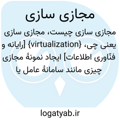{virtualization} [رایانه و فنّاوری اطلاعات] ایجاد نمونۀ مجازی چیزی مانند سامانۀ عامل یا افزارۀ رایانش یا افزارۀ ذخیره سازی یا افزاره های شبکه