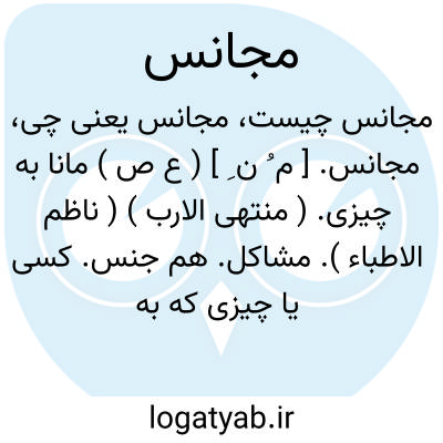 ( اسم ) ۱ - آنکه یا آنچه از جنس دیگری و همانند او باشد هم جنس: همچنان که اندرز چیزیست نه مجانس او اندر طبع. یا مجانس بودن. از جنس دیگری و همانند او بودن: سبب خشکی این فلزات بیشتر آنست که بجوهری که آنرا مجانس نباشد آمیخته گردند. متجانس.