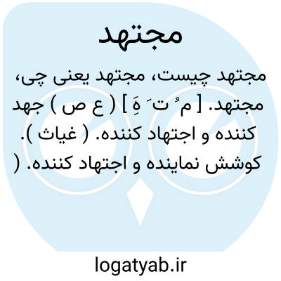 ( اسم ) ۱ - کوشش کننده کوشنده. ۲ - تحقیق کننده محقق. ۳ - آنکه بمرحله ای از علم رسیده که میتواند احکام شرع را از روی ادل. اربعه ( کتاب الله سنت عقل و اجماع ) استخراج کند: مجتهد هر گه که باشد نص شناس اندران صورت نیندیشد قیاس. ( مثنوی )