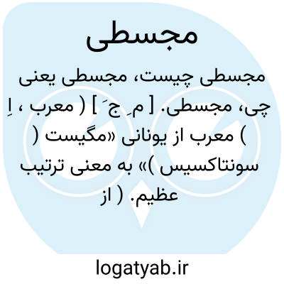 مجسطی. [ م ِ ج َ ] ( معرب، اِ ) معرب از یونانی «مگیست ( سونتاکسیس )» به معنی ترتیب عظیم. ( از حاشیه برهان چ معین ). || هیئت و نجوم و رجوع به ماده بعد شود.