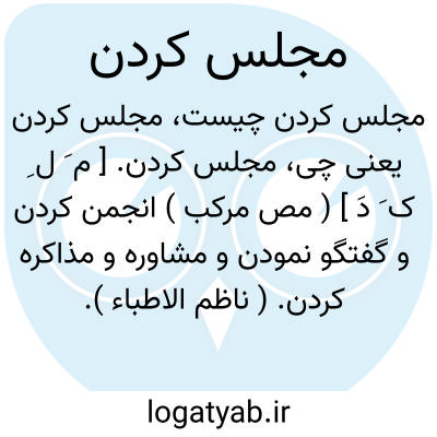 مجلس کردن. [ م َ ل ِ ک َ دَ ] ( مص مرکب ) انجمن کردن و گفتگو نمودن و مشاوره و مذاکره کردن. ( ناظم الاطباء ). جلسه کردن.مجلس تشکیل دادن. فراهم آمدن مشاوره و مصلحتی را: حاجب مجلسی کرد و بو سهل حمدوی و سوری و تنی چند دیگر که آنجای بودند با وی خالی بنشستند. ( تاریخ بیهقی چ فیاض ص 541 ). پس از این مجلسی کرد با استادم. او حکایت کرد که در آن خلوت چه رفت. ( تاریخ بیهقی چ ادیب ص 179 ). || فراهم آمدن ضیافت را. بزم ترتیب دادن. بساط عیش و طرب گستردن: