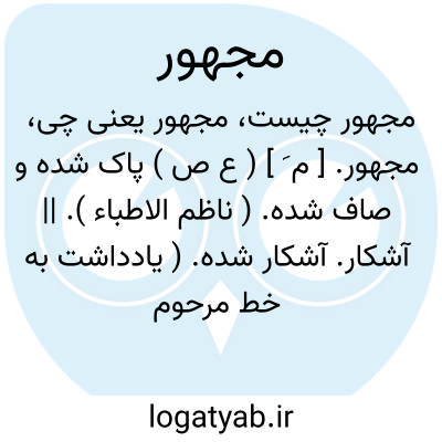 مجهور. [ م َ ] ( ع ص ) پاک شده و صاف شده. ( ناظم الاطباء ). || آشکار. آشکار شده. ( یادداشت به خط مرحوم دهخدا ). پیدا.