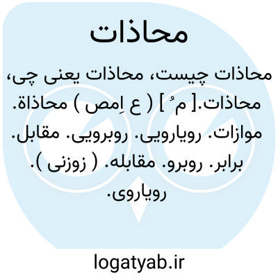 محاذات.[ م ُ ] ( ع اِمص ) محاذاة. موازات. رویارویی. روبرویی. مقابل. برابر. روبرو. مقابله. ( زوزنی ). رویاروی. روبرو. ( یادداشت به خط مرحوم دهخدا ): ایلک باحشر خویش به محاذات او نزول کرد. ( ترجمه تاریخ یمینی ص 298 ). || در اصطلاح حکما و متکلمین موازات نیز گفته شود و آن اتحاد در وضع است مانند دو انسان که نسبت به شخص ثالث در وضع با یکدیگر متساوی باشند. و آن از اقسام وحدت است. ( از کشاف اصطلاحات الفنون ). || در اصطلاح محاسبان بر طریقه ای ازطرق عمل ضرب اطلاق شود. ( از کشاف اصطلاحات الفنون ).