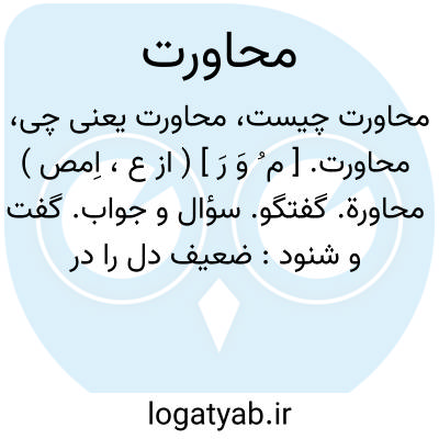 محاورت. [ م ُ وَ رَ ] ( از ع، اِمص ) محاورة. گفتگو. سؤال و جواب. گفت و شنود: ضعیف دل را در محاورت زبان کند شود. ( کلیله و دمنه ). و انتظار میکردم تا مگر در اثنای محاورت از تو کلمه ای زاید. ( کلیله و دمنه ). در حسن معاشرت و آداب محاورت. ( گلستان ). تفرج بلدان و محاورت خلان. ( گلستان ). مرد از مجاورت او به جان رنجیدی و از محاورت او چاره ندیدی. ( گلستان ). || عبارت است از معرفت مواقع کلام و بدایع حدیث با طبقات اقوام، موشح به لطایف و نکات و امثال و ابیات و بعضی این فن را علم محاضرات خوانند. ( از نفایس الفنون محمدبن محمود آملی، فن محاوره ). رجوع به محاورة شود.
