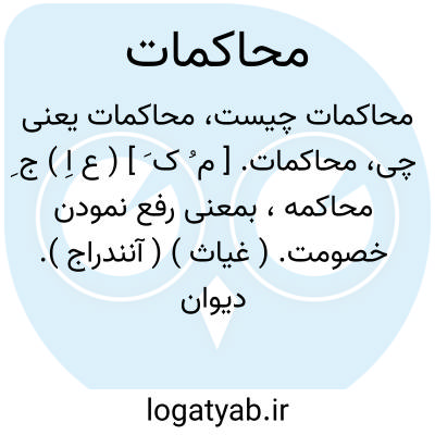 محاکمات. [ م ُ ک َ ] ( ع اِ ) ج ِ محاکمه، بمعنی رفع نمودن خصومت. ( غیاث ) ( آنندراج ). دیوان عدالت. ( ناظم الاطباء ).