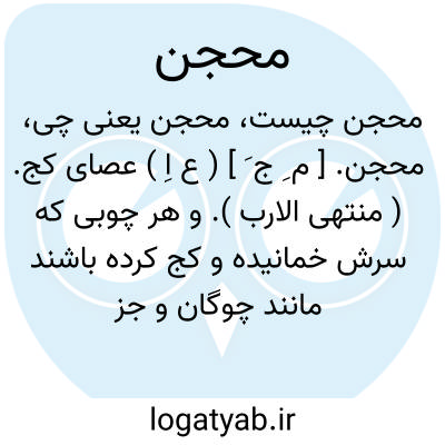 محجن. [ م ِ ج َ ] ( ع اِ ) عصای کج. ( منتهی الارب ). و هر چوبی که سرش خمانیده و کج کرده باشند مانند چوگان و جز آن. ج، محاجن. ( منتهی الارب ) ( ناظم الاطباء ). چوگان. ( غیاث ) ( دهار ). صولجان: