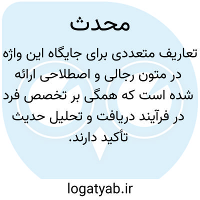 ( اسم ) ۱ - سخن گوینده. ۲ - داننده و روایت کنند. اخبار و احادیث جمع: محدثین.