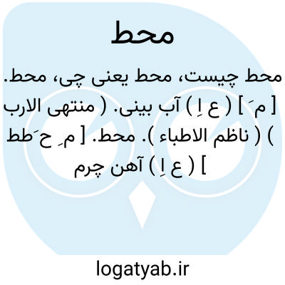 محط. [ م َ ] ( ع اِ ) آب بینی. ( منتهی الارب ) ( ناظم الاطباء ).