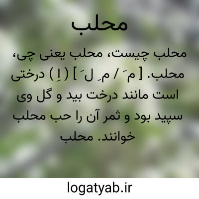 محلب. [ م َ / م ِ ل َ ] ( اِ ) درختی است مانند درخت بید و گل وی سپید بود و ثمر آن را حب محلب خوانند. محلب بهترین دست شویها است.از شاخ وی تازیانه کنند از جهت بوی خوب او که در دست بماند. ( از اختیارات بدیعی ). لیث گوید آن چیزی است که دانه او در عطرها به کار برند. منبت او بلاد آذربایجان است و دانه او راحب المحلب گویند. از انواع دست شویها نیکوتر از وی نیست و درخت او در زمین سردسیرباشد و بیشتر او را از کوهستانی که در نواحی عراق است چون نهاوند آورند و از ختلان آورند و در آن نواحی درخت او به غایت بزرگ بود و روغن دانه او را از آن نواحی به اطراف برند و در نواحی کرمان جز این نوع که در اطراف ختلان باشد نیست. ( از ترجمه صیدنه بیرونی ). درختی است که [ در ] دره های شهرستانک و اشترک که به جاده چالوس می پیوندد دیده میشود، ونیز در ارسباران دیده شده است. چوب آن خوشبوی است و برای پایه پیوند درختانی چون گیلاس و امثال آن به کار است ( گااوبا ). آلبالوی تلخ. ( یادداشت مرحوم دهخدا ). عودلیسر. ( یادداشت مرحوم دهخدا ). یکی از گونه های آلبالو که آن را آلبالوی تلخ. پیوند مریم. شجر ادریس نیز گویند. کنشتو. ( حاشیه لغت فرس اسدی نخجوانی ) ( از صحاح الفرس ). خنجک. ( بحر الجواهر ): محلب ثمره اش از فندق کوچکتر است. ( نزهةالقلوب ). و رجوع به حب المحلب و غیاث اللغات و آنندراج و برهان شود. || نوعی است از بوی خوش. ( مهذب الاسماء ).