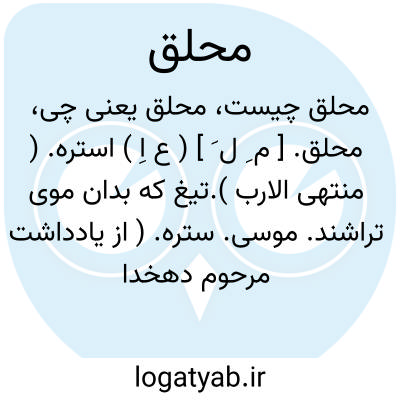 محلق. [ م ِ ل َ ] ( ع اِ ) استره. ( منتهی الارب ).تیغ که بدان موی تراشند. موسی. ستره. ( از یادداشت مرحوم دهخدا ). استره. ( مهذب الاسماء ). || گلیم درشت کانه یحلق الشعر. ج، محالق. ( منتهی الارب ).
