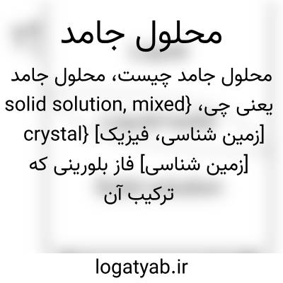 {solid solution, mixed crystal} [زمین شناسی، فیزیک] [زمین شناسی] فاز بلورینی که ترکیب آن در محدوده ای خاص می تواند بدون پدیدار شدن یک فاز اضافه تغییر کند [فیزیک] فاز بلورین همگن متشکل از دو مؤلفه درحالی که مؤلفۀ دوم به طور کاتوره ای جانشین مؤلفۀ اول می شود