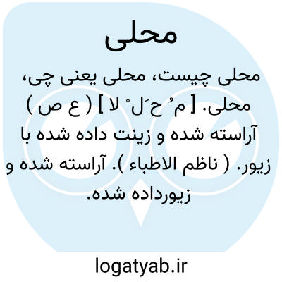 محلی. [ م ُ ح َل ْ لا ] ( ع ص ) آراسته شده و زینت داده شده با زیور. ( ناظم الاطباء ). آراسته شده و زیورداده شده. ( غیاث ) ( از منتهی الارب ): مرصع به زر و گوهر و محلی به لاَّلی و جوهر. ( سندبادنامه ص 313 ). هر دو منزه از لغو و تأثیم و محلی بخالص تبر تفضل و تکریم. ( ترجمه تاریخ یمینی ص 449 ).