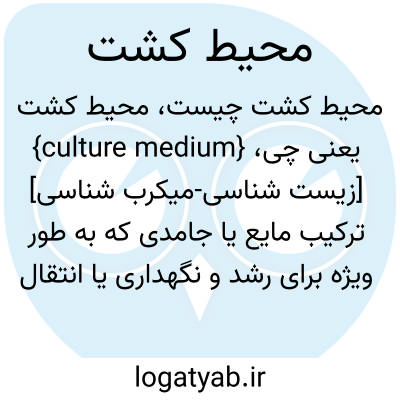 {culture medium} [زیست شناسی-میکرب شناسی] ترکیب مایع یا جامدی که به طور ویژه برای رشد و نگهداری یا انتقال ریزاندامگان ها یا سایر انواع یاخته ها تهیه می شود متـ. محیط medium