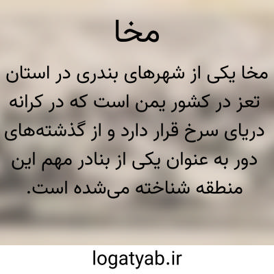 مُخا یا موکا نام یکی از شهرهای بندری در استان تعز در کشور یمن است که در کرانه دریای سرخ قرار دارد و از گذشتههای دور به عنوان یکی از بنادر مهم این منطقه شناخته میشده است. این شهر به دلیل موقعیت جغرافیایی خود در مسیر تجارت دریایی، نقش مهمی در ارتباط بازرگانی میان سرزمینهای عربی، آفریقا و آسیا داشته است. تا سده نوزدهم میلادی، بندر مخا بندر اصلی شهر صنعاء به شمار میرفت و پس از آن بنادر عدن و حدیده اهمیت بیشتری یافتند. جمعیت این شهر بر اساس سرشماری سال ۲۰۰۵ میلادی حدود ۱۴٬۵۶۲ نفر گزارش شده است. بندر مخا در جنوب جمهوری یمن قرار دارد و پیش از اتحاد یمن شمالی و یمن جنوبی در سال ۱۹۹۰ میلادی، در محدوده یمن شمالی قرار داشت. این بندر در گذشته یکی از ایستگاههای مهم مسیر سفر دریایی ایرانیان به سوی جده، مکه و مدینه بوده و در برخی سفرنامهها نیز از آن یاد شده است. اهمیت تاریخی مخا بیشتر به دلیل تجارت قهوه در سدههای پانزدهم تا هفدهم میلادی است، زمانی که این بندر بازار اصلی صادرات قهوه به نقاط مختلف جهان بود. نام مشهور «قهوه موکا» نیز از همین شهر گرفته شده و نشاندهنده نقش مهم آن در تاریخ تجارت قهوه است. موقعیت دریایی، پیشینه تجاری و ارتباط آن با مسیرهای زیارتی باعث شده مخا در تاریخ منطقه جایگاه قابل توجهی داشته باشد.