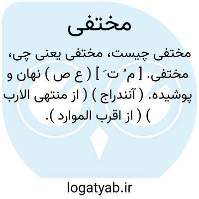 ۱ - ( اسم ) پنهان شونده. ۲ - ( صفت ) پوشیده پنهان: نک پیاپی کاروانها مقتفی زین شکاف در که هست آن مختفی. ( مثنوی ) یا قضای مختفی. قضاوقدر الهی که پوشیده و نهانست: بند تقدیر وقضای مختقی که ببیند آن بجز جان صفی. ( مثنوی ) یا های مختفی. های غیر ملفوظ که های بیان حرکت ماقبل است ( مثلا در: خانه لانه ).