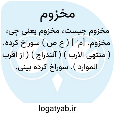 مخزوم. [م َ ] ( ع ص ) سوراخ کرده. ( منتهی الارب ) ( آنندراج ) ( از اقرب الموارد ). سوراخ کرده بینی. ( ناظم الاطباء ). || مقطوع: شراک مخزوم؛ ای مقطوع. ( اقرب الموارد ).
