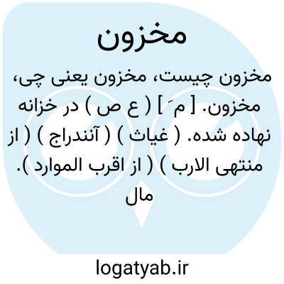 - مخزون داشتن؛ در خزانه نگه داشتن. در خزانه نهادن و محفوظ داشتن ملکشاه... خزاین و دفاین و نفایس بر آنجا مخزون و مدفون داشتی. ( سلجوقنامه ٔظهیری ص 32 ).