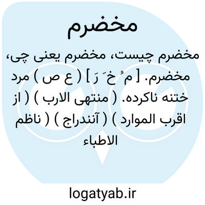 (مُ خَ رَ ) [ ع. ] (اِمف. ) ۱ - مرد ختنه ناکرده. ۲ - سیاهی که پدرش سفیدپوست باشد. ۳ - آن که دعوی نسبتی کند و دعوی او راست نباشد. ۴ - آن که بخشی از عمر خود را در عهد جاهلیت و بخش دیگر را در دورة اسلام گذرانیده.