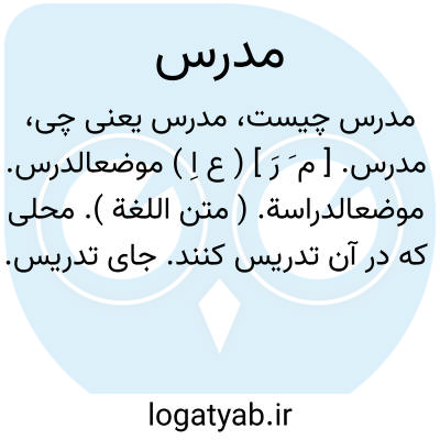( اسم ) درس دهنده تدریس کننده: نگار من که بمکتب نرفت و خط ننوشت بغمزه مساله آموز صد مدرس شد. ( حافظ ) جمع: مدرسین.