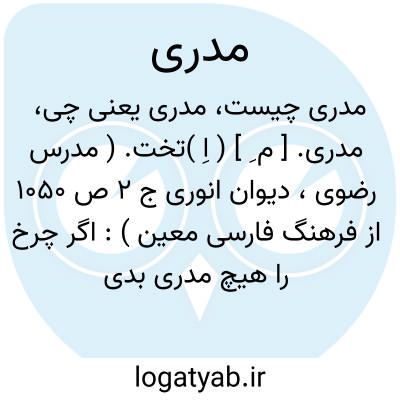مدری. [ م ِ ] ( اِ )تخت. ( مدرس رضوی، دیوان انوری ج 2 ص 1050 از فرهنگ فارسی معین ):