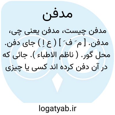 مدفن. [ م ُدْ دَ ف َ ] ( ع ص ) پوشیده شده. پنهان کرده. ( ناظم الاطباء ). مستور. ( ازاقرب الموارد ): اِدَّفَنَه ُ؛ دفنه. ( از متن اللغة ).