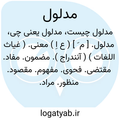 مدلول. [ م َ ] ( ع اِ ) معنی. ( غیاث اللغات ) ( آنندراج ). مضمون. مفاد. مقتضی. فحوی. مفهوم. مقصود. منظور. مراد. مستفاد. تفسیر. تأویل. ( یادداشت مؤلف ). || برهان. دلیل. ( ناظم الاطباء ). || آنچه که از علم به چیزی دیگر علم بدان لازم آید. ( از تعریفات ) مقابل دال. || ( ص ) آنچه دلیل آن را ثابت کرده. ( یادداشت مؤلف ). دلالت کرده شده. ره نموده شده. راه راست نموده شده. دلیل آورده شده. ( ناظم الاطباء ). نعت مفعولی است از دلالت. رجوع به دلالت شود.