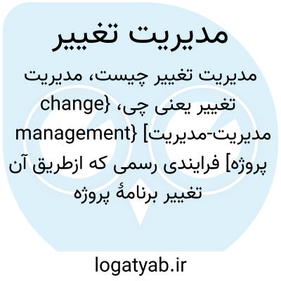 {change management} [مدیریت-مدیریت پروژه] فرایندی رسمی که ازطریق آن تغییر برنامۀ پروژه تصویب و ابلاغ می شود