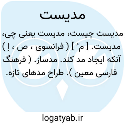 مدیست. [ م ُ ] ( فرانسوی، ص، اِ ) آنکه ایجاد مد کند. مدساز. ( فرهنگ فارسی معین ). طراح مدهای تازه. مبدع. که طرح های بدیع در شیوه ها و وسایل پوشیدن و خوردن و زیستن عرضه کند. || اهل مد. پیرو مد.مدپرست. که دلبسته و شیفته شیوه های تازه باشد، بخصوص در انتخاب لباس و شیوه های آرایش و تفنن و تجمل.