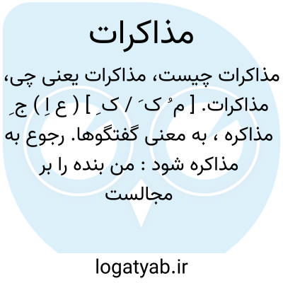 مذاکرات. [ م ُ ک َ / ک ِ ] ( ع اِ ) ج ِ مذاکره، به معنی گفتگوها. رجوع به مذاکره شود: من بنده را بر مجالست و دیدار و مذاکرات و گفتار ایشان الفی تازه گشته بود. ( کلیله و دمنه ). علم بی مذاکرات... پایدار نباشد. ( کلیله و دمنه ). || یادآوری ها. ( ناظم الاطباء ). رجوع به مذاکره شود.