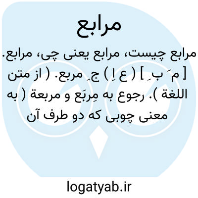 مرابع. [ م َ ب ِ ] ( ع اِ ) ج ِ مربع. ( از متن اللغة ). رجوع به مِربَع و مربعة ( به معنی چوبی که دو طرف آن بگیرند و با آن بار بر پشت ستور نهند ) شود. || ج ِ مربع، به معنی باران بهاری. ( از اقرب الموارد ). رجوع به مَربَع شود. || ج ِ مربع، به معنی اقامتگاه تابستانی و ییلاق. ( از اقرب الموارد ) ( از متن اللغة ). رجوع به مَربَع شود: بستانش حدائق... نوع انسان چنان نواحی و مرابع به چشم و گوش ندیده و نشینده. ( ترجمه محاسن اصفهان ص 11 ). || جای بارشهای بهار. رجوع به معنی قبلی شود. || منزل ها. مکانها. ( آنندراج ) ( غیاث اللغات ). رجوع به معنی سوم شود.