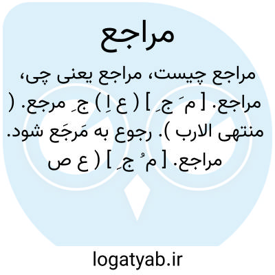 (مَ جِ ) [ ع. ] (اِ. ) جِ مرجع.، ~ تقلید مجتهدانی که مردم از آنان در احکام شرعی تقلید کنند.، ~ قانون منابعی که قوانین از آن ها اقتباس و استنباط شده است.، ~قانونی مؤسسات و اداراتی که بر طبق قانون برای مراجعة افراد به منظور تنظیم روابط افراد با هم