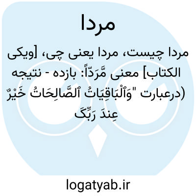 [ویکی الکتاب] معنی مَّرَدّاً: بازده - نتیجه (درعبارت "وَﭐلْبَاقِیَاتُ ﭐلصَّالِحَاتُ خَیْرٌ عِندَ رَبِّکَ ثَوَاباً وَخَیْرٌ مَّرَدّاً": و اعمال شایسته پایدار نزد پروردگارت از جهت پاداش بهتر و از لحاظ بازدهی نیکوتر است)