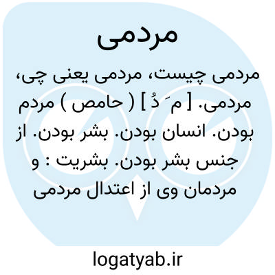 چون ناطقه ره یافت در این جسم مکدر.ناصرخسرو.اگر شخصی از حد بیرون افتد از مزاج مردمی بیرون شود. ( ذخیره خوارزمشاهی ). زیرا که وی [ نوشتن، کتابت ] است که مردم را از مردمی به درجه فرشتگی رساند و دیو را ز دیوی به مردمی رساند. ( نوروزنامه ). || انسانیت. مروت. آدمیت. دارای صفات نیک انسانیت بودن: