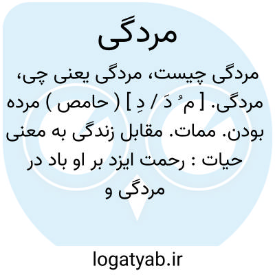 مردگی. [ م ُ دَ / دِ ] ( حامص ) مرده بودن. ممات. مقابل زندگی به معنی حیات: رحمت ایزد بر او باد در مردگی و زندگی. ( تاریخ بیهقی ص 309 ).