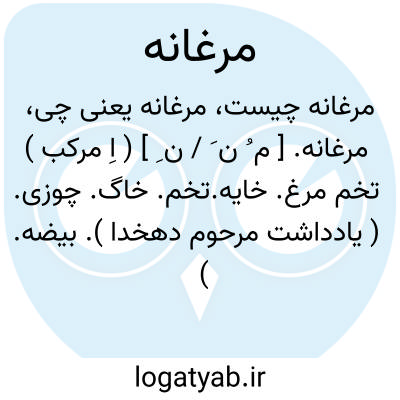 مرغانه. [ م ُ ن َ / ن ِ ] ( اِ مرکب ) تخم مرغ. خایه.تخم. خاگ. چوزی. ( یادداشت مرحوم دهخدا ). بیضه. ( زمخشری ). || نیم رو. ( یادداشت مرحوم دهخدا ).