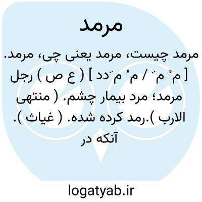 مرمد. [ م ُ م َ / م ُ م َدد ] ( ع ص ) رجل مرمد؛ مرد بیمار چشم. ( منتهی الارب ).رمد کرده شده. ( غیاث ). آنکه در چشم او رمد باشد. ( از اقرب الموارد ). أرمد. مبتلا به رمد. دردگین چشم.
