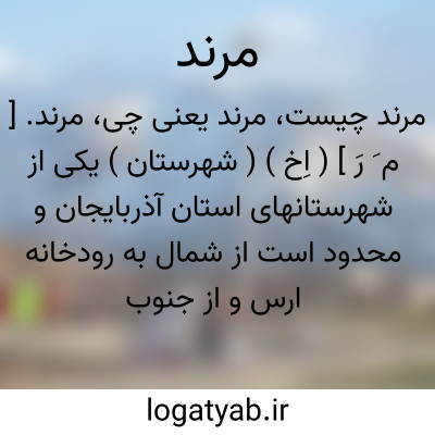 مرند. [ م َ رَ ] ( اِخ ) ( شهرستان ) یکی از شهرستانهای استان آذربایجان و محدود است از شمال به رودخانه ارس و از جنوب به بخش شبستر و میشوداغ و کوه علمدار و از شرق به بخش ورزقان و از غرب به بخش ایواوشی و ولدیان. ( خط الرأس کوه علی باشی آقداغ ). این شهرستان از نظر تقسیمات کشوری از 3 بخش تشکیل یافته است. ( از فرهنگ جغرافیایی ایران ج 4 ).
