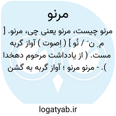 - مرنو مرنو؛ آواز گربه به گشن آمده. حکایت آواز گربه گه به گشن آمدگی. ( یادداشت مرحوم دهخدا ).
