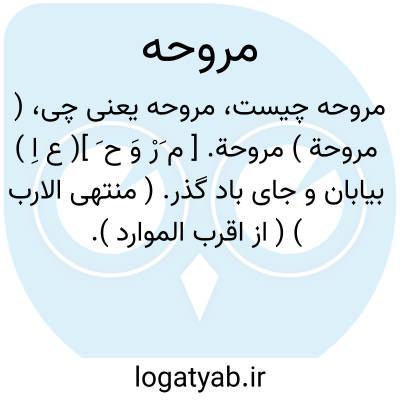 ( مروحة ) مروحة. [ م َرْ وَ ح َ ]( ع اِ ) بیابان و جای باد گذر. ( منتهی الارب ) ( از اقرب الموارد ). جایگاه که باد نیک وزد. ( دهار ). ج، مَراویح. ( منتهی الارب ). ج، مَراوح. ( از اقرب الموارد ).