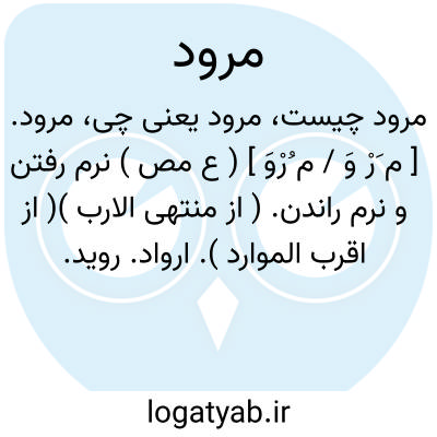 مرود. [ م ِرْ وَ ] ( ع اِ ) میل سرمه.( منتهی الارب ) ( از اقرب الموارد ). سرمه چوب. ( دهار ).سرمه کش. چوب سرمه دان. میل سرمه: کان [ بقراط ] کثیرالصوم قلیل الأکل و بیده أبداً اما مِبضع و اًما مِرود. ( عیون الانباء ج 1 ص 28 ). || آهن حلقه لگام که گرد آن باشد. || چرخ دلو از آهن. ( منتهی الارب ) ( از اقرب الموارد ). || وتد. ( از اقرب الموارد ). میخ. || مفصل. ج، مَراود. || محور. ( اقرب الموارد ). || میله ای که باز بر آن نشیند و زنجیری دارد که پای بدان بندند. حلقه ای مانند زنجیر که بدان پای باز را بندند یا گردن یوز را: اما مرود باز باید آهنین باشد خاصه در کریز خانه و برنشیمه خود صواب آن است که از آهن بود و چون بر دست گیرند و مرود از سیم و زر بود شاید. ( بازنامه نسوی ص 105 ). و یوز بود که عادت دارد که مَرَس به دندان ببرد ( قطع کند ). و یوزداران زنجیر به مرودش اندر کشند و او ناچار زنجیر خاید و بیم آن بود که دندانش بشکند و اگر نشکند سوده شود و زیان دارد. ( بازنامه ص 171 ).