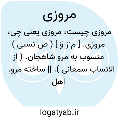 مروزی. [ م َرْ وَ ] ( ص نسبی ) منسوب به مرو شاهجان. ( از الانساب سمعانی ). || ساخته مرو. || اهل مرو. از مرو. مرغزی: فأما الطعم والجودة. ( فی ة الیابس من الفواکه ) فان المروزی ة یفضله... ( صور الاقالیم اصطخری در فصل شرح مرو شاهجان ).
