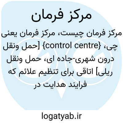 {control centre} [حمل ونقل درون شهری-جاده ای، حمل ونقل ریلی] اتاقی برای تنظیم علائم که فرایند هدایت در محدودۀ وسیعی از مسیرها از آنجا صورت می گیرد