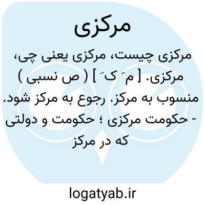 ( صفت ) منسوب به مرکز مربوط به مرکز. یا حکومت مرکزی. حکومتی که در پایتخت کشوری متمرکز است.