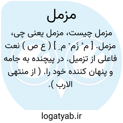 مزمل. [ م ُزْ زَم ْ م ِ ] ( ع ص ) آنکه به خود می پیچد و در جامه های خود پنهان میشود. ( از منتهی الارب ) ( ناظم الاطباء ). در جامه پیچیده. ( آنندراج ) ( برهان ). به گلیم پیچیده شده. ( یادداشت به خط مرحوم دهخدا ).
