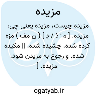 مزیده. [ م َ دَ / دِ ] ( ن مف ) مزه کرده شده. چشیده شده. || مکیده شده. و رجوع به مزیدن شود.