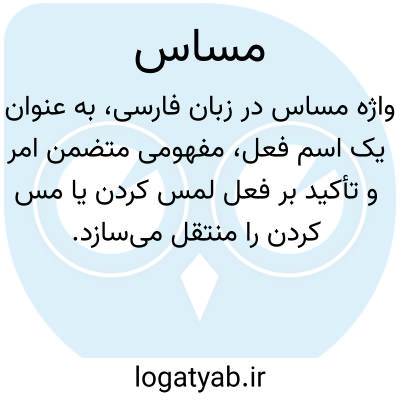 واژهٔ مَساس در زبان فارسی، به عنوان یک اسم فعل، مفهومی متضمن امر و تأکید بر فعل لمس کردن یا مس کردن را منتقل میسازد. این ساختار که از قواعد صرف و اشتقاق زبان عربی پیروی میکند، در ساختار نحوی فارسی بیشتر به عنوان یک جملهٔ امری فشرده و بلیغ به کار میرود و معنایی فراتر از یک فرمان صرف را در بر دارد؛ گویی فراخوانی برای برقراری ارتباط فیزیکی یا حسی مستقیم است.
