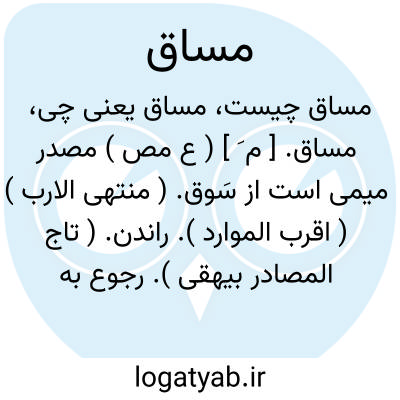 مساق. [ م َ ] ( ع مص ) مصدر میمی است از سَوق. ( منتهی الارب ) ( اقرب الموارد ). راندن. ( تاج المصادر بیهقی ). رجوع به سوق شود: اِلی ربک یومئذ المساق. ( قرآن 30/75 ). در جمله مراد از مساق این سخن آن بود که چنین پادشاه بدین کتاب رغبت نمود. ( کلیله و دمنه ). || ( اِ ) جای راندن. ( غیاث ) ( آنندراج ). || راه. طریق. روش: در این موضع اثبات این ابیات اگر چه نه از طرز و مساق این سیاقت است. ( جهانگشای جوینی ). || ضمن. طی. خلال. تضاعیف: قال الحافظ عبدالغافر... الفارسی فی مساق تاریخ نیسابور أبوزکریا یحیی... رجل فاضل... ( ابن خلکان ).